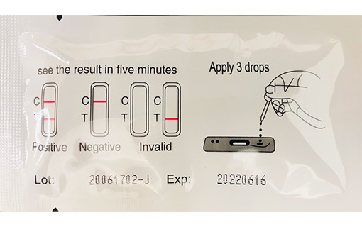2. Positive Result: Test (“T”) line and control (“C”) line within the result window indicate the presented CCV.