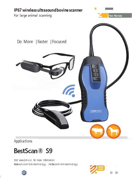 BestScan™ S9 is wireless ultrasound system with the exciting breakthrough in technology such as AI for better images, wireless freedom,works on IOS and Android device, specifically engineered for all aspects of bovine and equine reproductive imaging,as well as for basic equine tendon imaging.